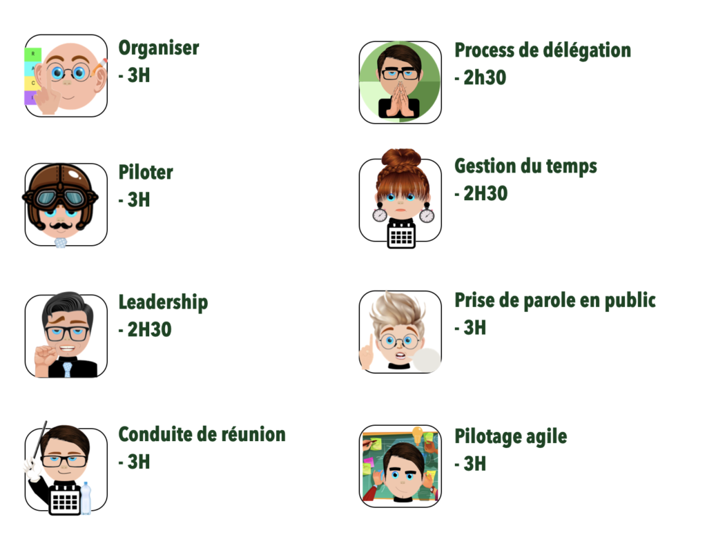 Ces e-learning, disponibles en << français et anglais >> dynamiques et interactifs vous permettront de maîtriser des outils et process pour rendre les collaborateurs plus compétents.